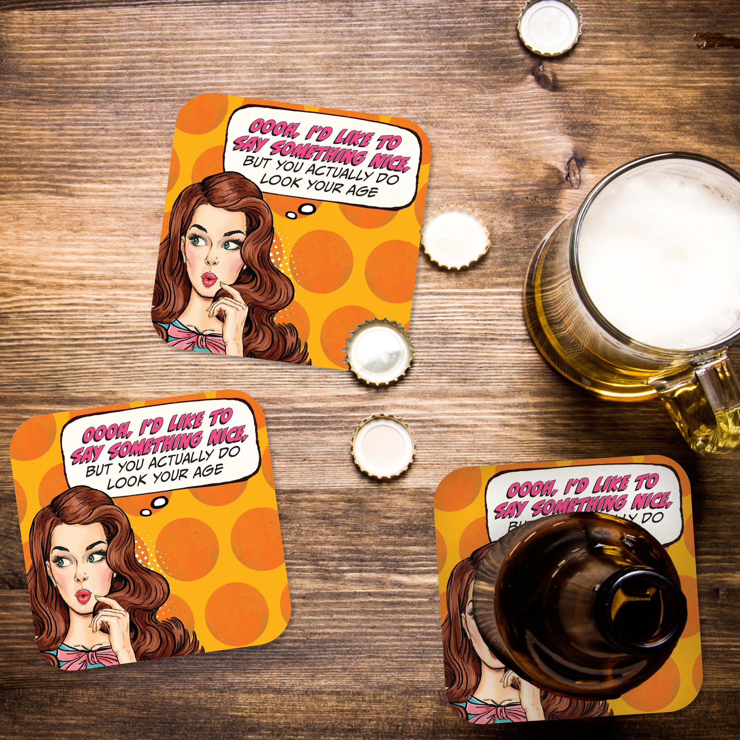 From our retro Pop Life! collection comes this set of 20 classic bar Coasters for celebrating at the next birthday party.