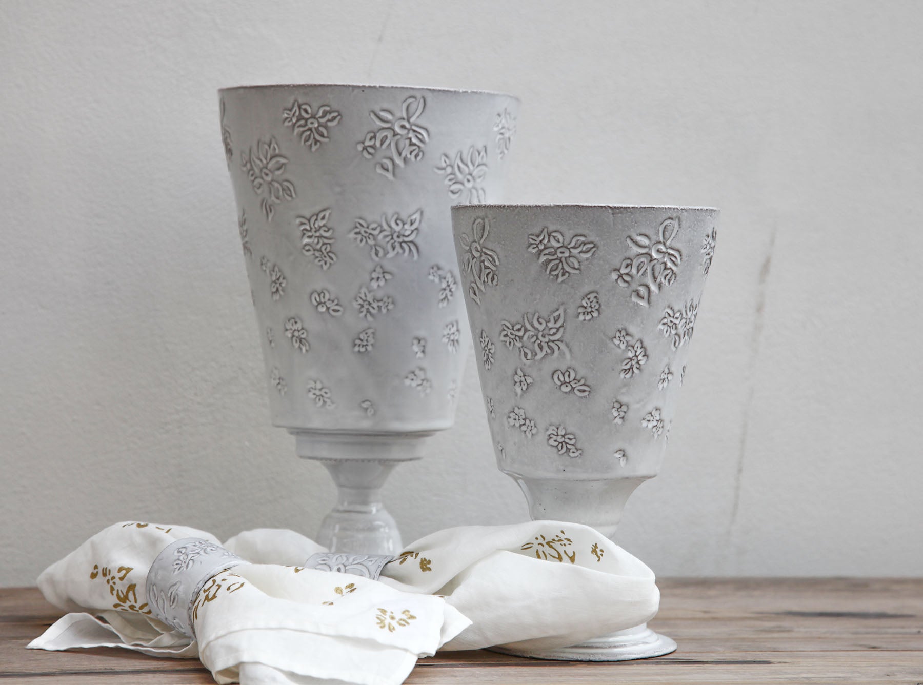 The limited-edition collection, which includes a stunning�vase (in two sizes) and Astier de Villatte's first ever�napkin rings, is imprinted with Bernadette's classic flower that she drew on all her notes and letters.